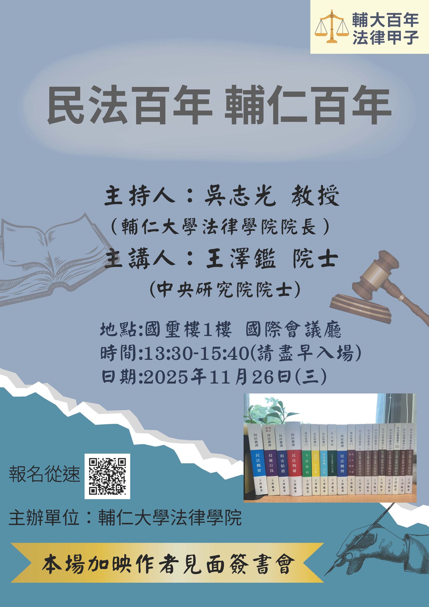 ※會後有簽書會,歡迎攜帶王澤鑑老師著作與會